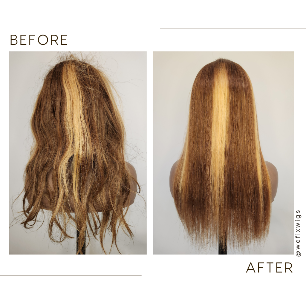 Revitalize your wigs with expert care. From frizz to flawless, we restore shine, softness, and style, giving your wigs a brand-new lease on life.